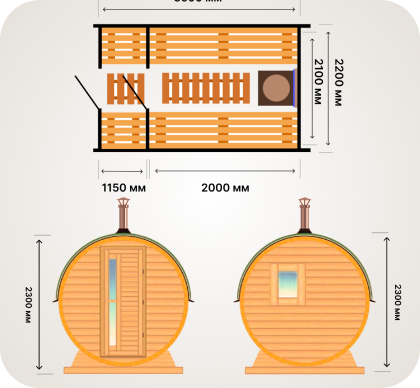 Diese Sauna besteht aus zwei Räumen (Saunaraum 2 m, Umkleideraum 1,15 m) mit einer Veranda von 0,6 m und bietet Platz für 5-6 Personen gleichzeitig. Unsere Saunen entsprechen den Brandschutzbestimmungen und werden Ihnen bei sachgemäßer Benutzung viele Jahre Freude bereiten. Hinter dem Ofen befindet sich eine Minerit-Schutzwand und der Schornstein ist mit einer Schutzhaube versehen. Die Farbe der Sauna können Sie nach Ihrem Geschmack wählen. Es gibt vier Farben für die weichen Dachschindeln – grau, grün, rot und braun. Wir können Ihnen auch andere Schindelfarben anbieten, die zu Ihrem bestehenden Gebäude passen. Außerdem bieten wir eine große Auswahl an Fassaden- und Dekoranstrichen.